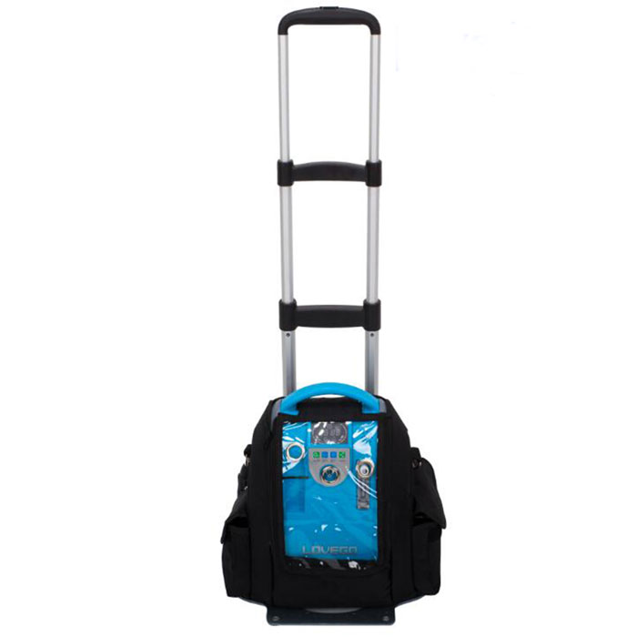 Φορητός Συμπυκνωτής Οξυγόνου ελαφρύς με αθόρυβη λειτουργία, συνεχούς ροής οξυγόνου 0.5 εως 5-LPM. Περιλαμβάνει τσάντα και τροχήλατο καροτσάκι μεταφοράς.